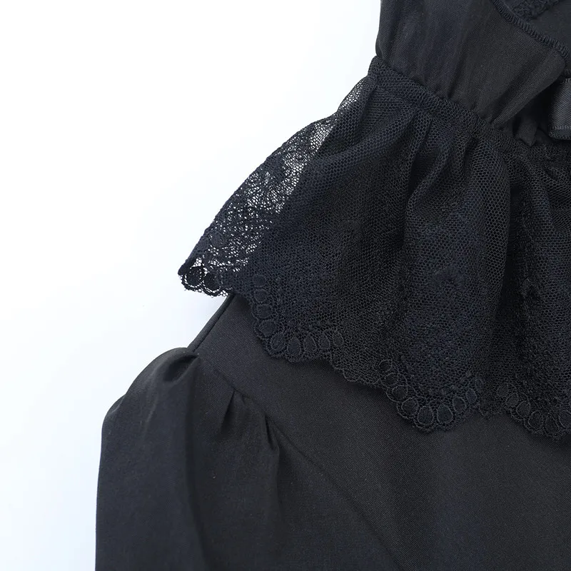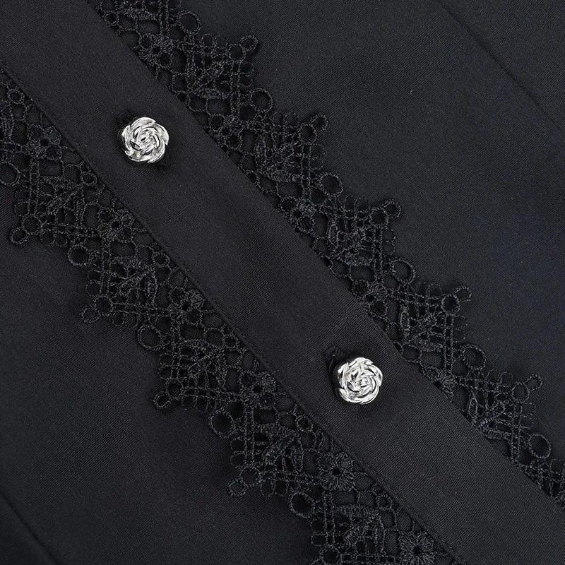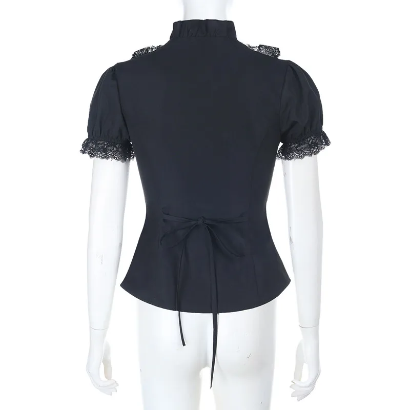 GothDark Harajuku Fashion Short Sleeve Lace Patchwork Shirts Women Alt Techwear Mall Gothic Button Slim Blouse Shirt Cute Tops