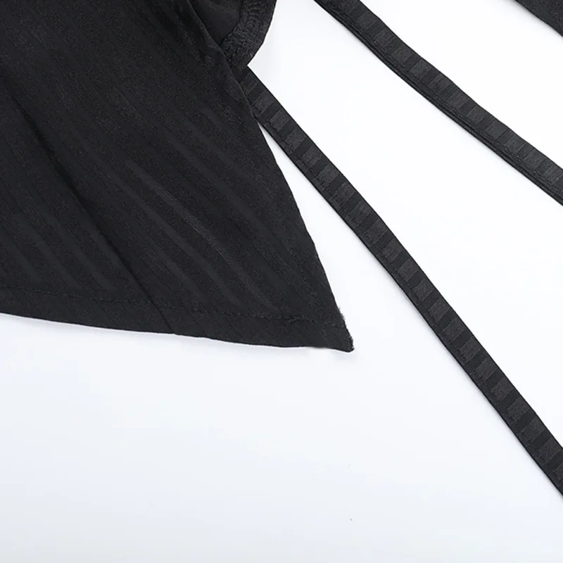 GothDark Kawaii Black Short Sleeve Buttons Shirt Lace-Up Blouses Mall Gothic Slim Lapel Collar Stripe Shirts Women Alt Techwear