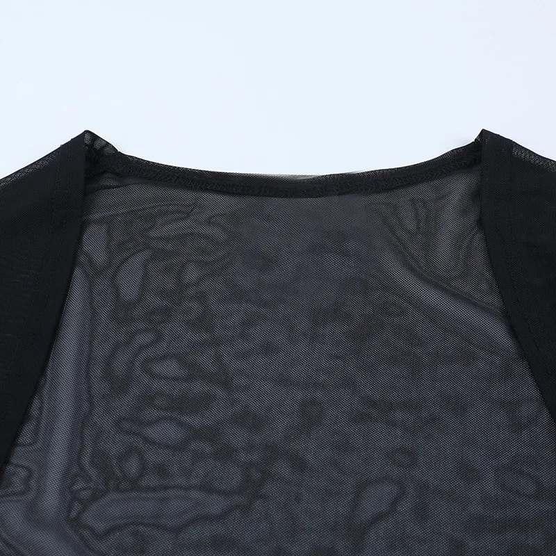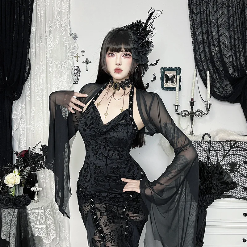 GothDark Mall Gothic Mesh See through Crop Shrug Tops Women Chic Coat Techwear Y2K Grunge Batwing Sleeve Sunscreen Smock Blouse